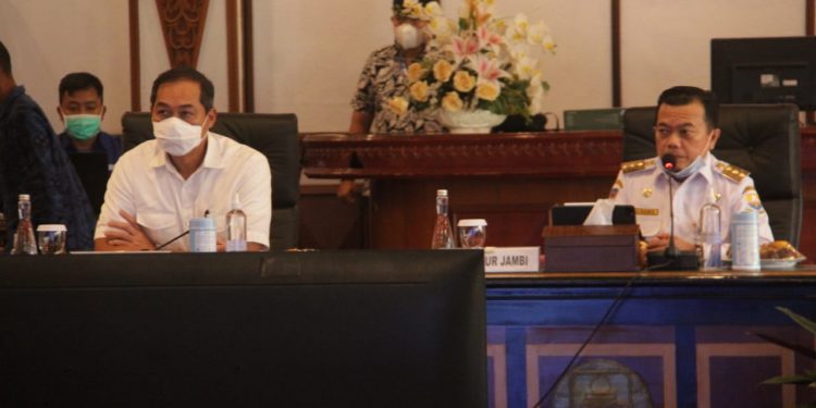 Inilah Jambi – Gubernur Jambi, Dr.H.Al Haris,S.Sos.,M.H., menyatakan, Pemerintah Provinsi Jambi terus berupaya dan berkomitmen dalam menjaga stabilitas perekonomian di Provinsi Jambi, terlebih ditengah pandemi covid-19 dan kenaikan harga minyak sayur beberapa waktu yang lalu. Hal tersebut dinyatakan Al Haris pada Rapat Koordinasi Perdagangan se Provinsi Jambi bersama Menteri Perdagangan RI, yang berlangsung di Auditorium Rumah Dinas Gubernur Jambi, Jum’at (25/02/22).