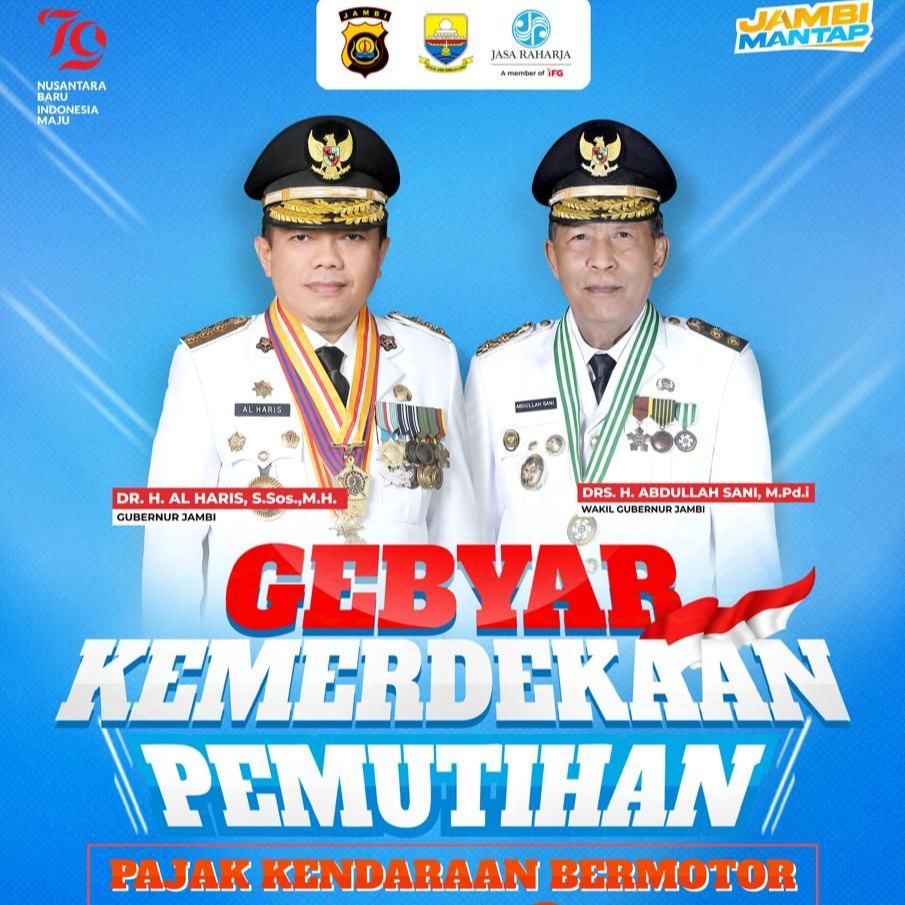 Inilah Jambi – Gubernur Jambi Al Haris lewat Pemerintah Provinsi (Pemrov) Jambi, mengadakan pemutihan pajak kendaraan dalam rangka memperingati Hari Ulang Tahun Republik Indonesia (HUT RI) ke-79.