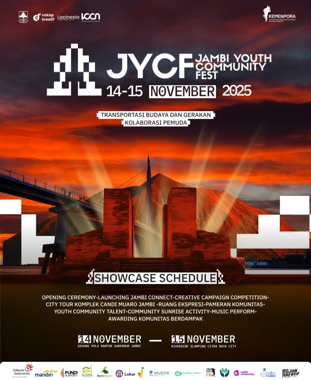 JYCF sendiri mengusung tema Transportasi Budaya dan Gerakan Kolaborasi Pemuda. Kegiatan ini sangat menarik, yang mana memiliki rangkaian kegiatan seperti Kompetisi Kampanye Kreatif, City Tour komplek Candi Muaro Jambi, Ruang Ekspresi – Pameran Komunitas, Bakat Komunitas Pemuda, Community Sunrise Activity, Musik Perform, hingga Awarding Komunitas Berdampak.