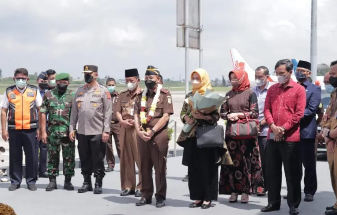Inilah Jambi – Ketua DPRD Provinsi Jambi, Edi Purwanto bersama bersama Wakil Gubernur Jambi Abdullah Sani, Kapolda Jambi Irjan A. Rahmad Wibowo, Danrem yang diwakili Kasirem 042 Gapu, Walikota Jambi Syarif Fasha serta PJU Kejati Jambi dan Para Kajari se-Jambi melakukan penyambutan kedatangan Kepala Kejaksaan Tinggi Jambi yang baru Elan Suherlan beserta Ketua IAD wilayah Jambi Tiana Elan di VIP Bandar Sultan Thaha Jambi, Selasa (23/8).