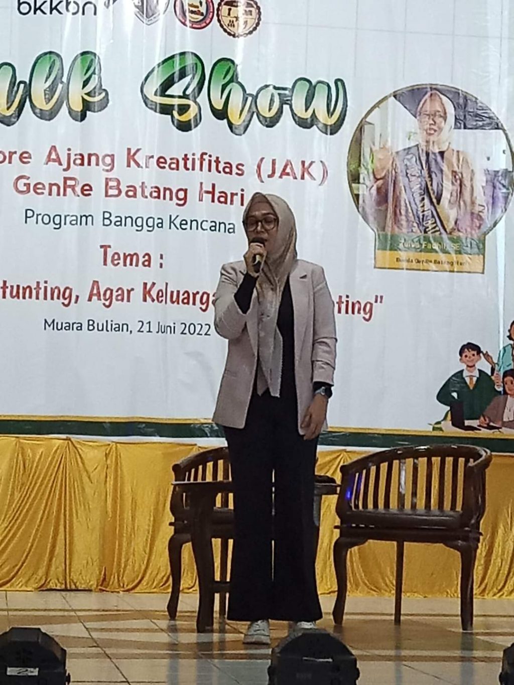 BATANGHARI.Inilahjambi.com— etua Tim Penggerak (TP) Pemberdayaan Kesejahteraan Keluarga (PKK) yang juga merupakan Bunda Genre Batanghari Zulva Fadhil, hadiri giat Talk Show Jambore Ajang Kreatifitas (JAK) Generasi Berencana (Genre) Program Bangga Kencana dengan tema ‘Ayo cegah stunting, agar keluarga bebas stunting’, Selasa (21/06/2022).
