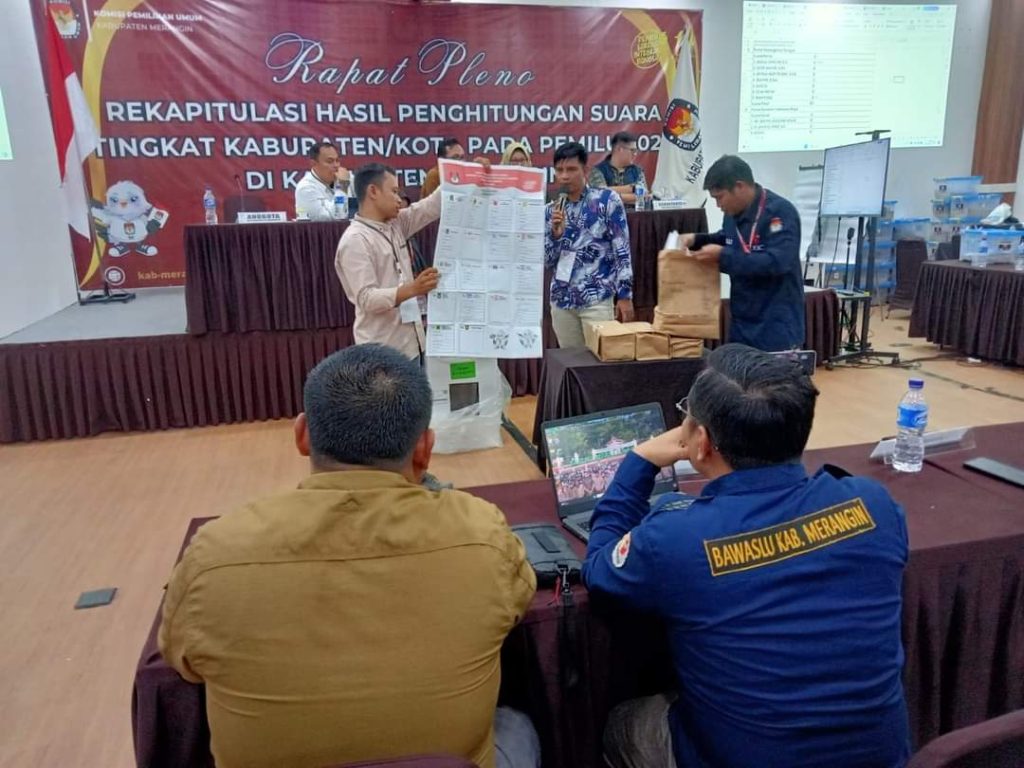 Inilah Jambi – Ada yang menarik pada rapat pleno rekapitulasi hasil penghitungan suara pemilu 2024 tingkat kabupaten Merangin di hari terakhir, Selasa 5 Maret 2024.