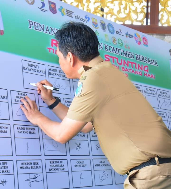 Terhitung SK Kepala Bappenas tersebut, Pemerintah daerah Kabupaten Batang Hari langsung menikdaklanjuti dengan pernyataan komitmen pelaksanaan percepatan penurunan stunting pada bulan Juni 2021 serta ditindaklanjuti dengan penerbitan Peraturan Bupati Batang Hari Nomor 7 Tahun 2021 tentang Percepatan Pencegahan Stunting Terintegrasi di Kabupaten Batang Hari dan Surat Keputusan Bupati Batang Hari Nomor 503 Tahun 2021 Tentang Tim Percepatan Penurunan Stunting Kabupaten Batang Hari termasuk SK Tim Percepatan Penurunan Stunting Tingkat Kecamatan, Tingkat Desa/Kelurahan serta Surat Keputusan Bupati Batang Hari Nomor 8 Tahun 2022 Tentang Penetapan Desa/Kelurahan Lokasi Prioritas Percepatan Penurunan Dan Pencegahan Stunting Kabupaten Batang Hari Tahun 2022 Dan 2023.